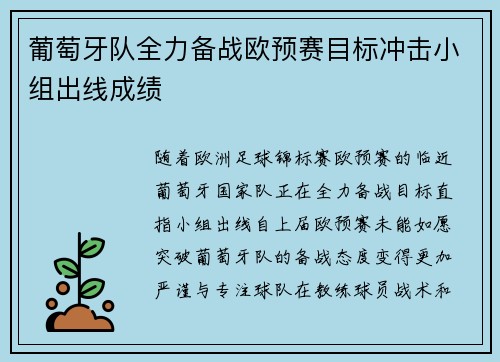 葡萄牙队全力备战欧预赛目标冲击小组出线成绩