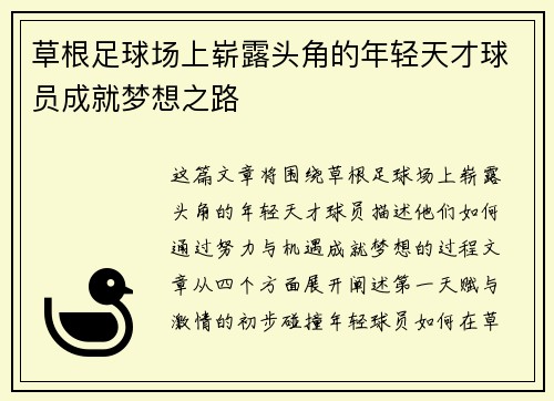 草根足球场上崭露头角的年轻天才球员成就梦想之路