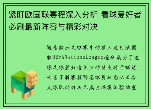 紧盯欧国联赛程深入分析 看球爱好者必刷最新阵容与精彩对决