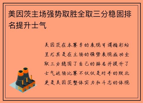 美因茨主场强势取胜全取三分稳固排名提升士气