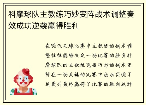科摩球队主教练巧妙变阵战术调整奏效成功逆袭赢得胜利