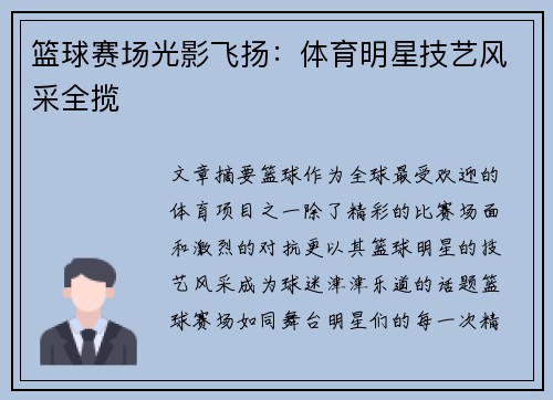篮球赛场光影飞扬:体育明星技艺风采全揽