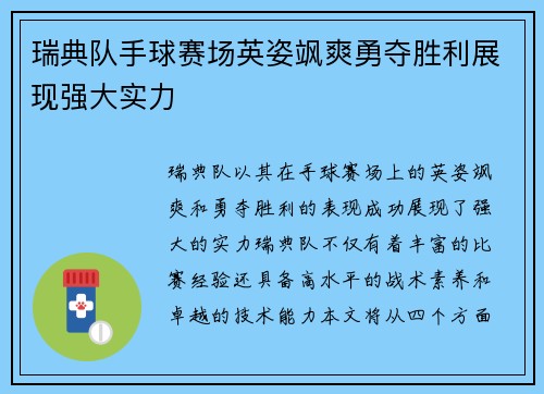 瑞典队手球赛场英姿飒爽勇夺胜利展现强大实力