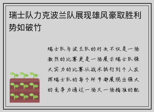 瑞士队力克波兰队展现雄风豪取胜利势如破竹