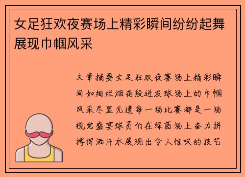 女足狂欢夜赛场上精彩瞬间纷纷起舞展现巾帼风采