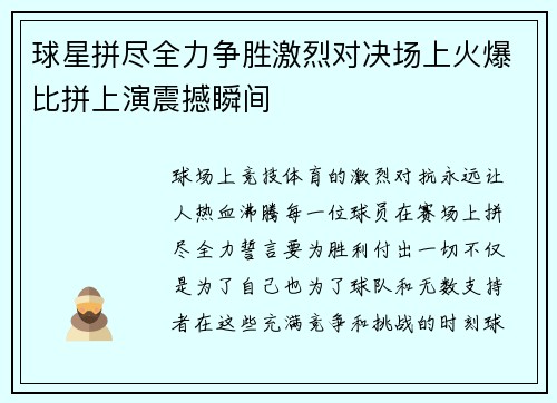 球星拼尽全力争胜激烈对决场上火爆比拼上演震撼瞬间