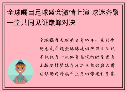 全球瞩目足球盛会激情上演 球迷齐聚一堂共同见证巅峰对决