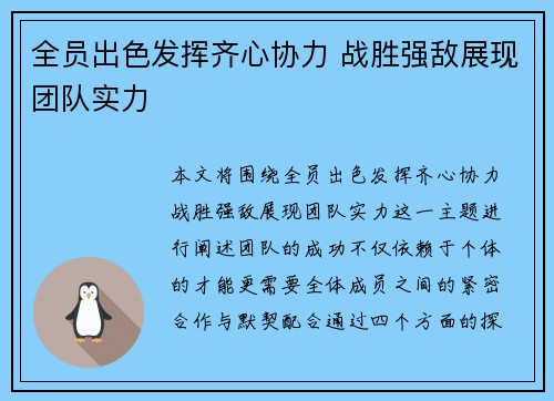 全员出色发挥齐心协力 战胜强敌展现团队实力
