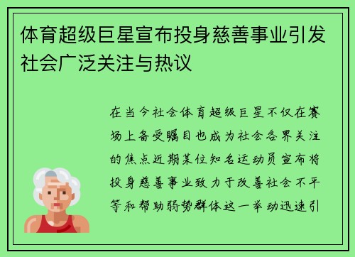 体育超级巨星宣布投身慈善事业引发社会广泛关注与热议