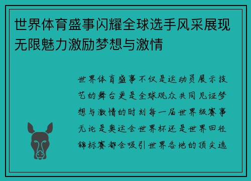 世界体育盛事闪耀全球选手风采展现无限魅力激励梦想与激情