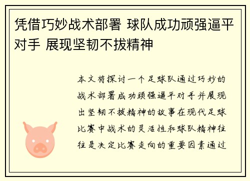 凭借巧妙战术部署 球队成功顽强逼平对手 展现坚韧不拔精神