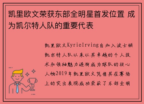 凯里欧文荣获东部全明星首发位置 成为凯尔特人队的重要代表