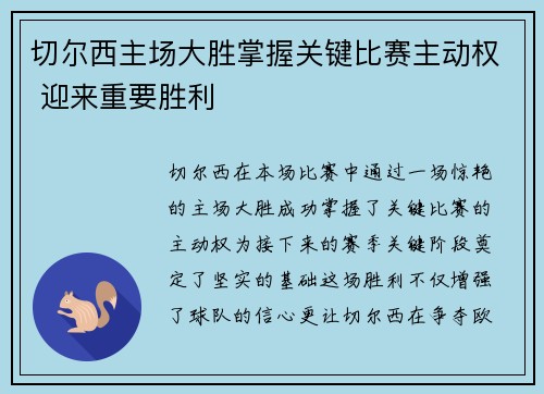 切尔西主场大胜掌握关键比赛主动权 迎来重要胜利