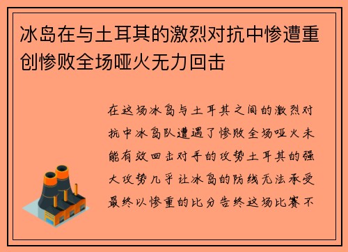 冰岛在与土耳其的激烈对抗中惨遭重创惨败全场哑火无力回击