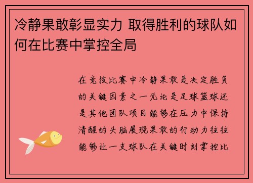 冷静果敢彰显实力 取得胜利的球队如何在比赛中掌控全局