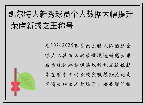 凯尔特人新秀球员个人数据大幅提升 荣膺新秀之王称号