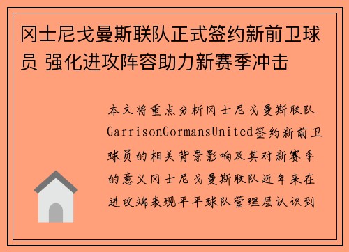 冈士尼戈曼斯联队正式签约新前卫球员 强化进攻阵容助力新赛季冲击