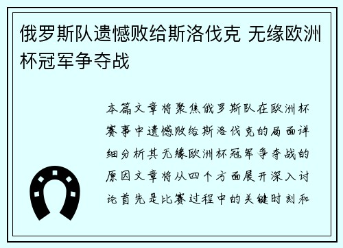 俄罗斯队遗憾败给斯洛伐克 无缘欧洲杯冠军争夺战