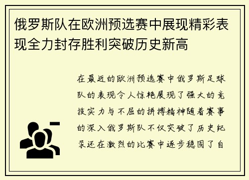 俄罗斯队在欧洲预选赛中展现精彩表现全力封存胜利突破历史新高
