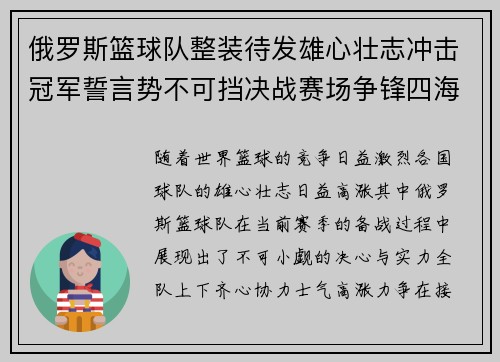 俄罗斯篮球队整装待发雄心壮志冲击冠军誓言势不可挡决战赛场争锋四海
