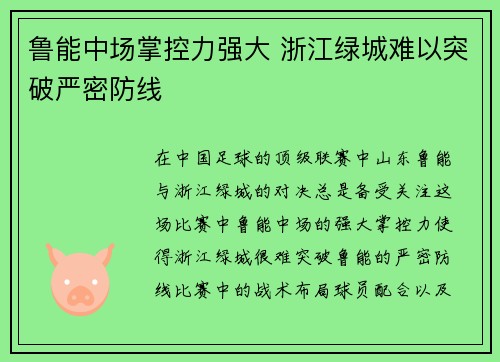 鲁能中场掌控力强大 浙江绿城难以突破严密防线