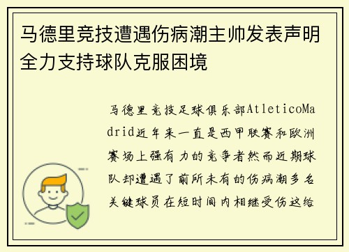 马德里竞技遭遇伤病潮主帅发表声明全力支持球队克服困境
