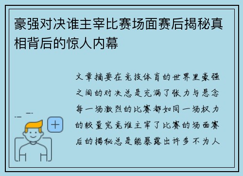 豪强对决谁主宰比赛场面赛后揭秘真相背后的惊人内幕