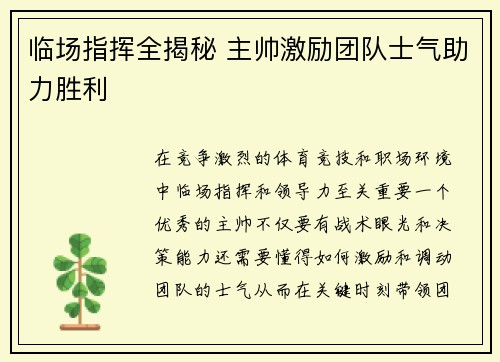临场指挥全揭秘 主帅激励团队士气助力胜利