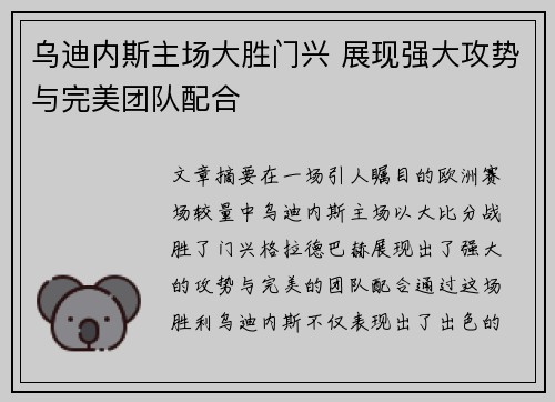 乌迪内斯主场大胜门兴 展现强大攻势与完美团队配合