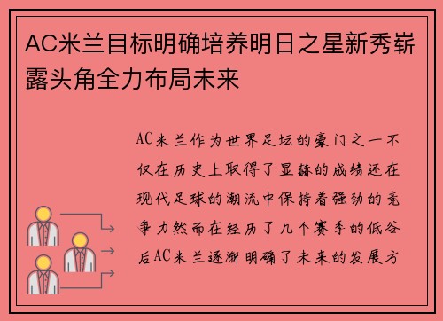 AC米兰目标明确培养明日之星新秀崭露头角全力布局未来