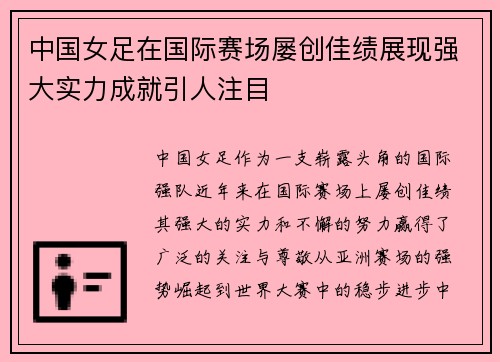 中国女足在国际赛场屡创佳绩展现强大实力成就引人注目