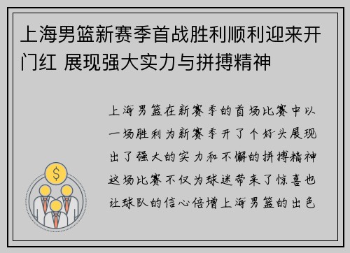 上海男篮新赛季首战胜利顺利迎来开门红 展现强大实力与拼搏精神