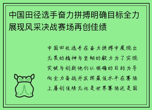 中国田径选手奋力拼搏明确目标全力展现风采决战赛场再创佳绩