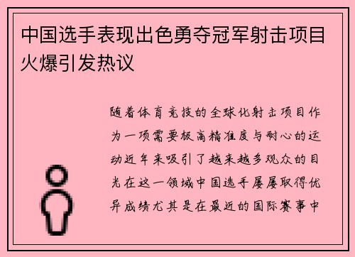 中国选手表现出色勇夺冠军射击项目火爆引发热议