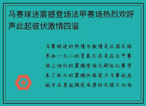 马赛球迷震撼登场法甲赛场热烈欢呼声此起彼伏激情四溢