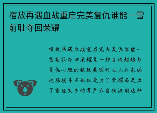 宿敌再遇血战重启完美复仇谁能一雪前耻夺回荣耀