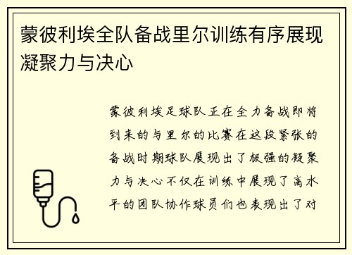 蒙彼利埃全队备战里尔训练有序展现凝聚力与决心