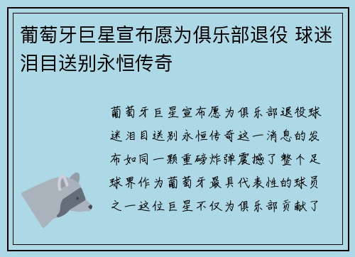 葡萄牙巨星宣布愿为俱乐部退役 球迷泪目送别永恒传奇